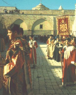 195-1, 196, 196-1 = Jerusalem is at the heart of the Easter ceremonies for all the Christian denominations; for it was in Jerusalem that Jesus was crucified and arose from the dead.